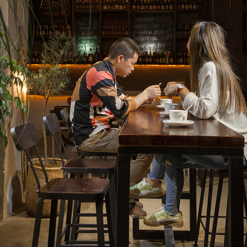 American iron art solid wood home bar table-table milk tea shop leaning against wall strip Bar retro high foot table and chairs combination