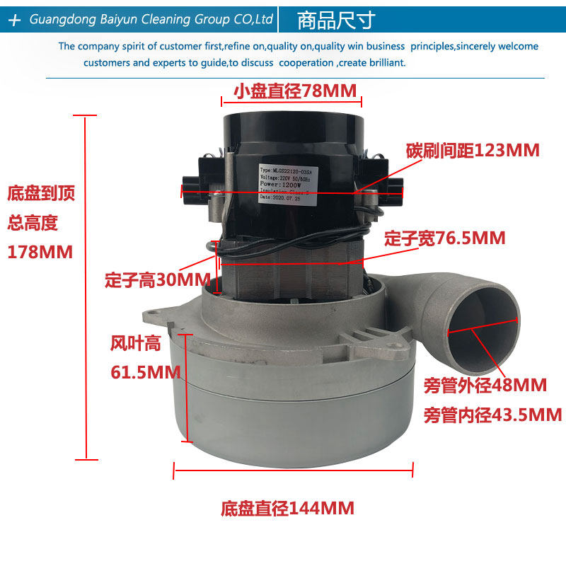 Baiyunjie cleaner dust - free saw washing machine motor motor motor motor motor motor motor 220V accessories 1200W copper wire