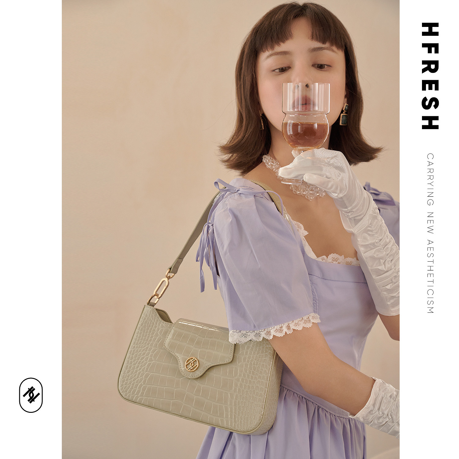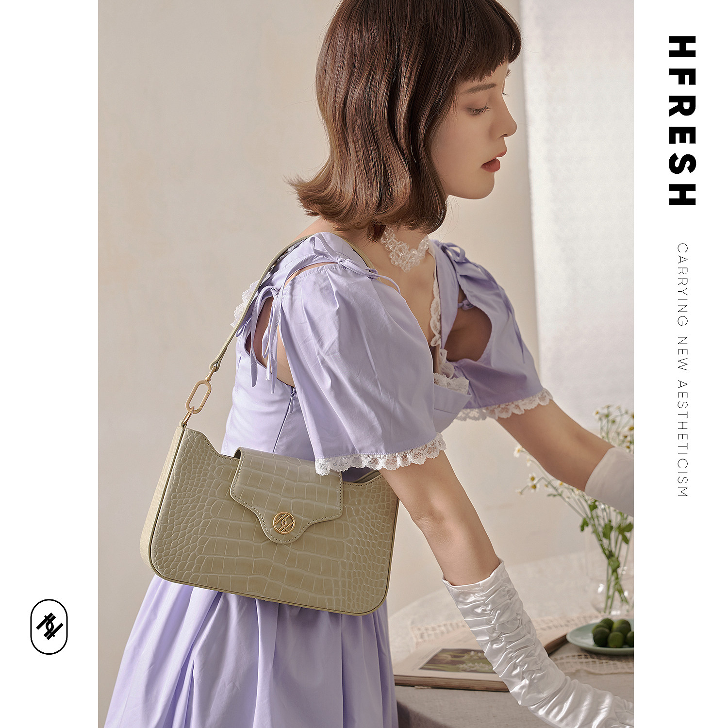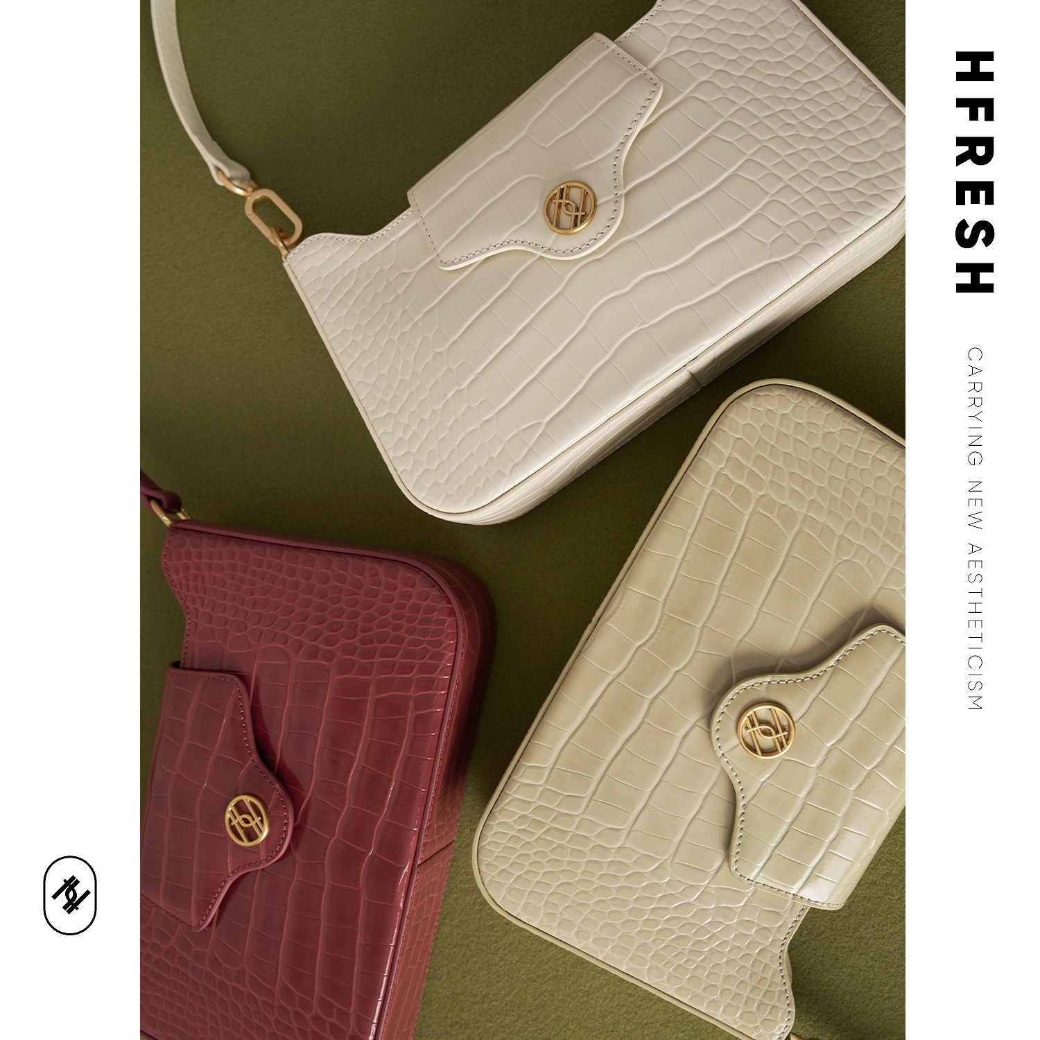 HFresh leather niche retro crocodile pattern one-shoulder portable baguette bag women's bag new 2021 underarm bag