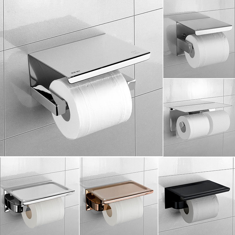Roll paper hanging rack 304 stainless steel paper towel rack wall-mounted phone toilet paper towel box free of perforated toilet paper rack-Taobao