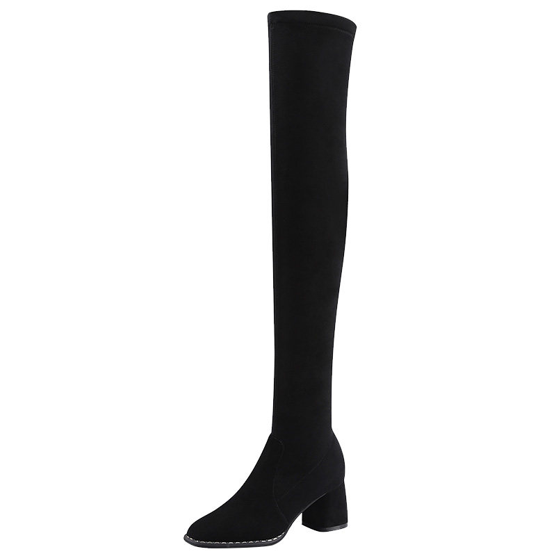 Long Boots Woman Over Knee 2020 Autumn Winter New Genuine Leather High Heel Elastic Boots Coarse heel Lean Long Barrel Boots Big Size Women Boots 41