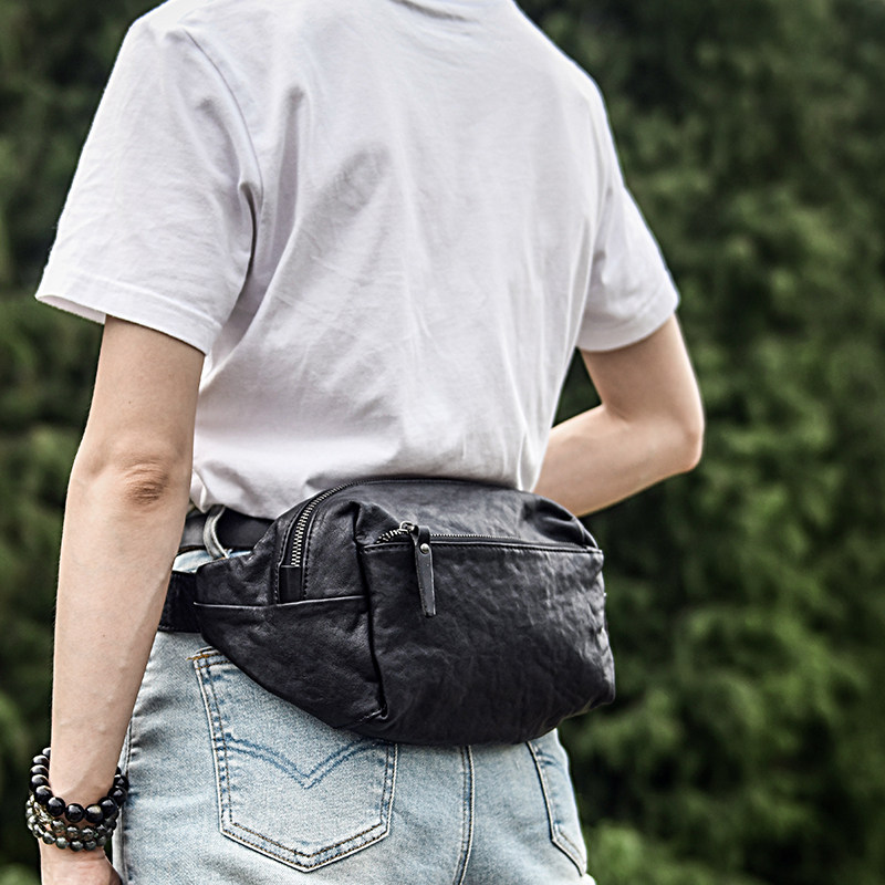 Simple front layer cowhide men's chest bag men's genuine leather cross-body bag casual cross-body bag shoulder bag cross-body bag waist bag