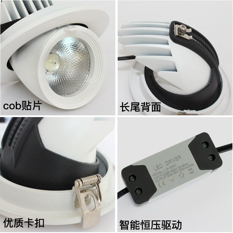 LED spotlight embedded ceiling light home downlight living room ceiling adjustable angle hole light hole light cob elephant trunk light