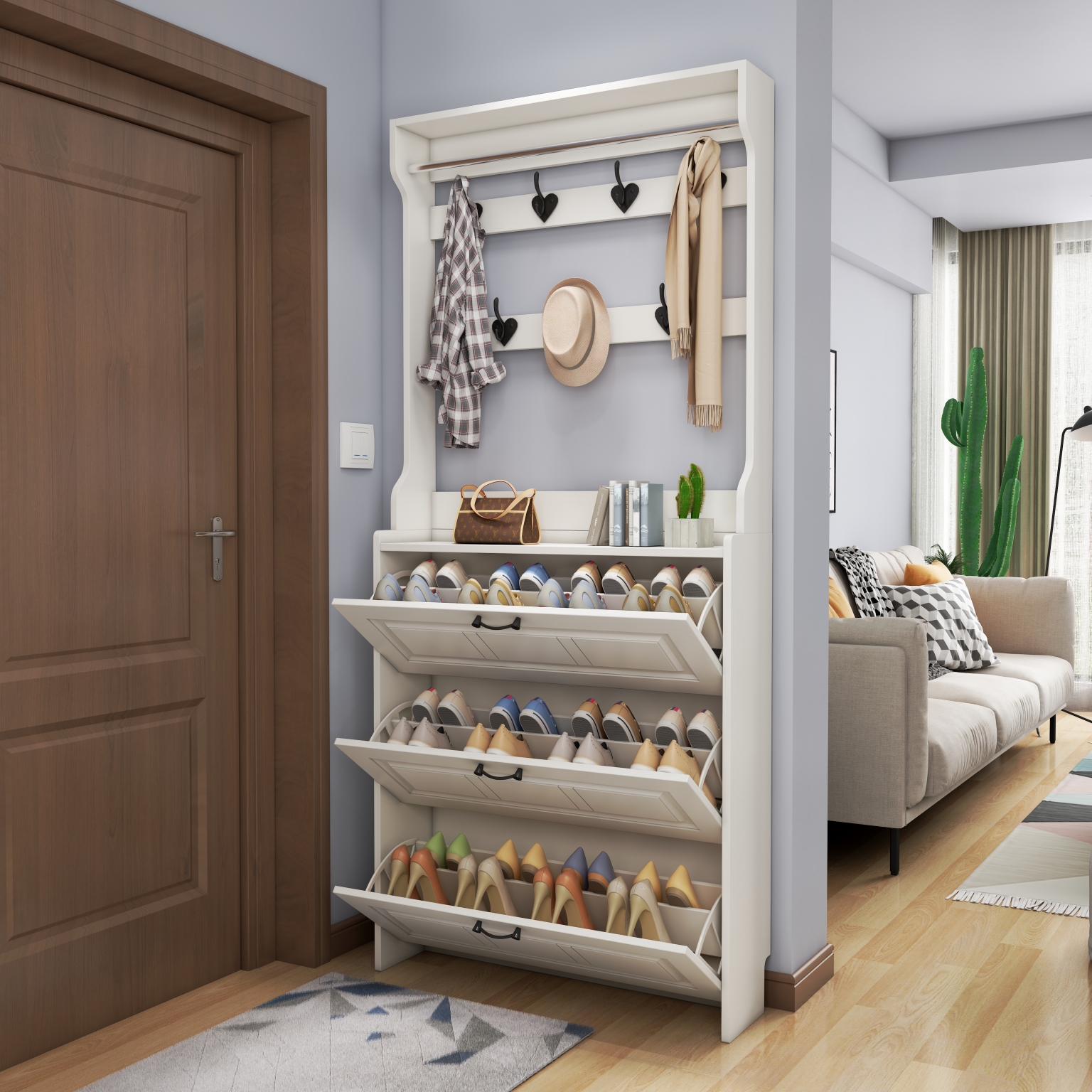 White ultra-thin shoe cabinet tipping shoe cabinet home door with coat rack simple modern large-capacity storage small shoe rack