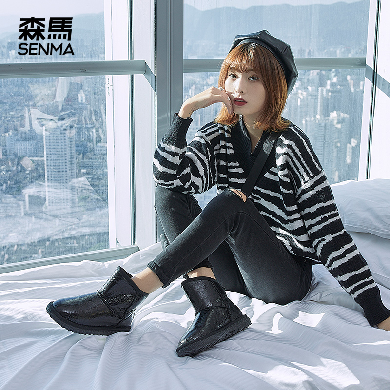 Semir cotton shoes women's winter new 2020 plus velvet warm and thin retro snow boots leather flat non-slip boots