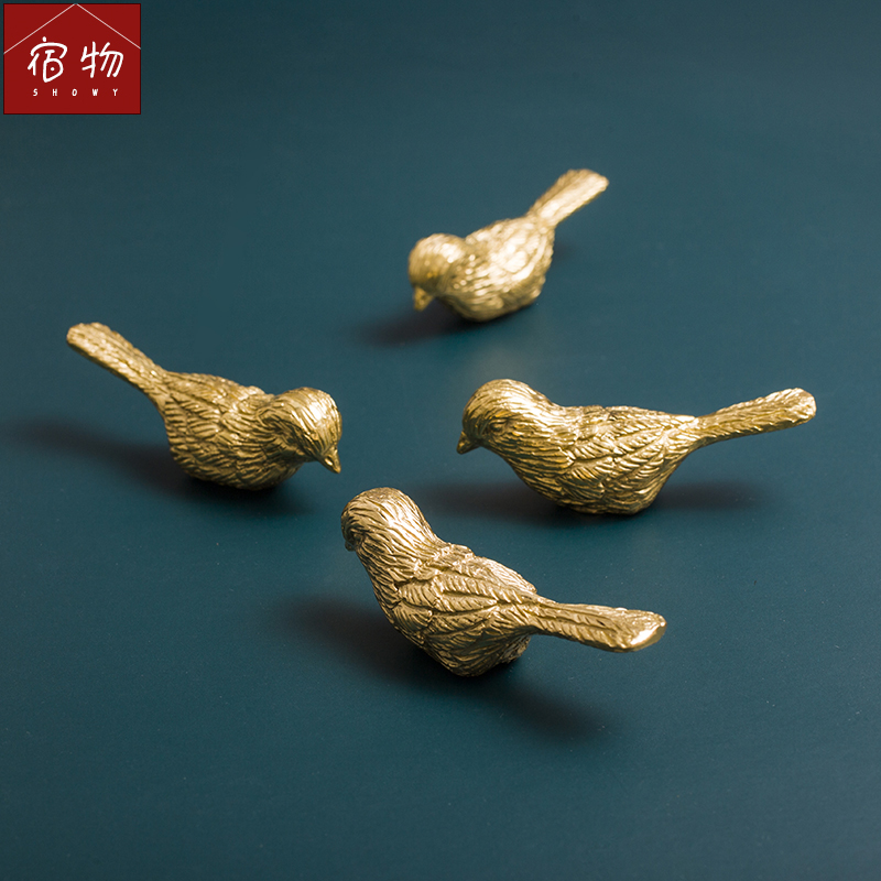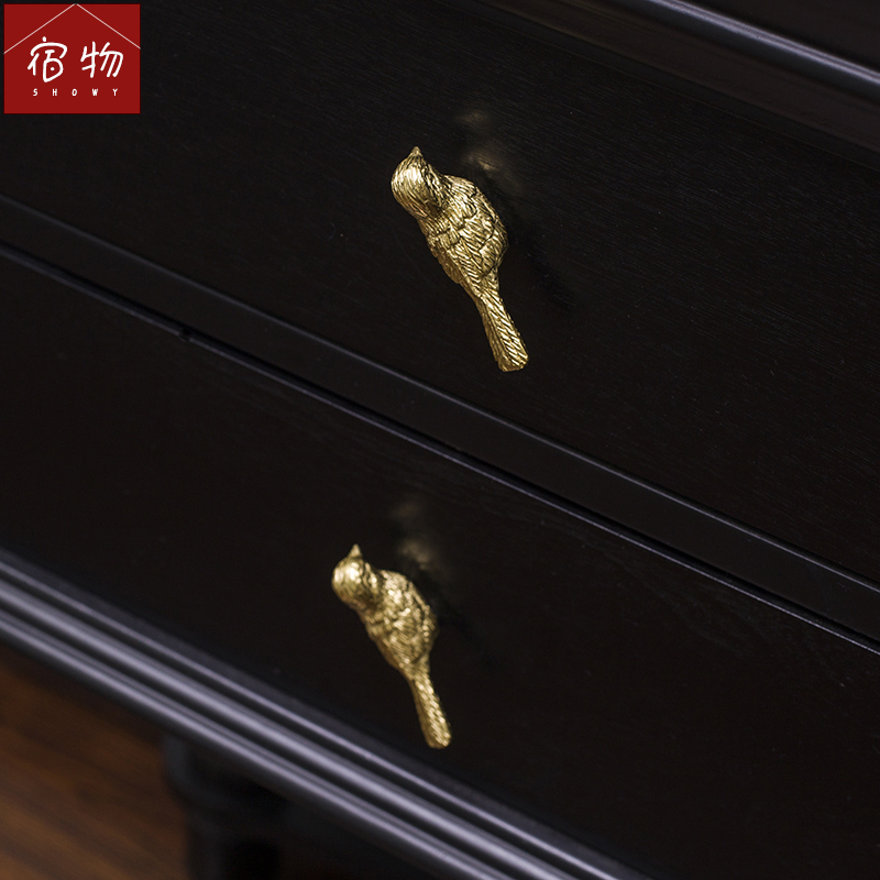 American vintage all copper rich bird handle drawer cabinet cabinet whole cabinet door pure brass single hole handle