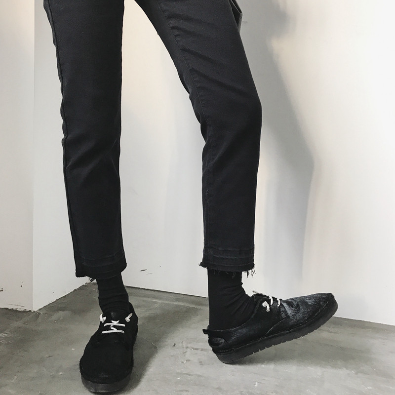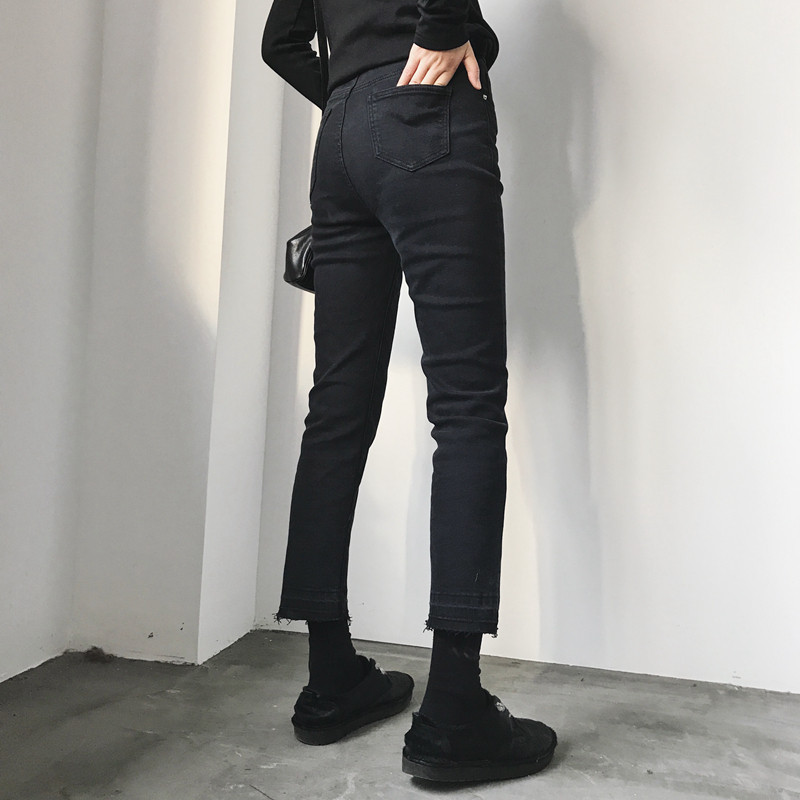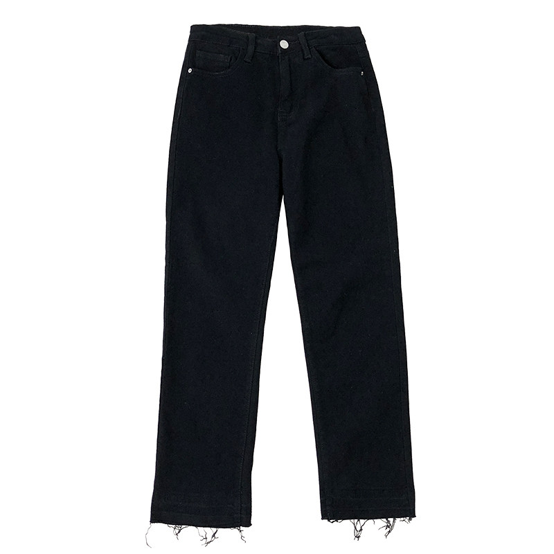2020 early autumn new large size black jeans women's high waist and thin Korean version all-match loose straight nine-point pants