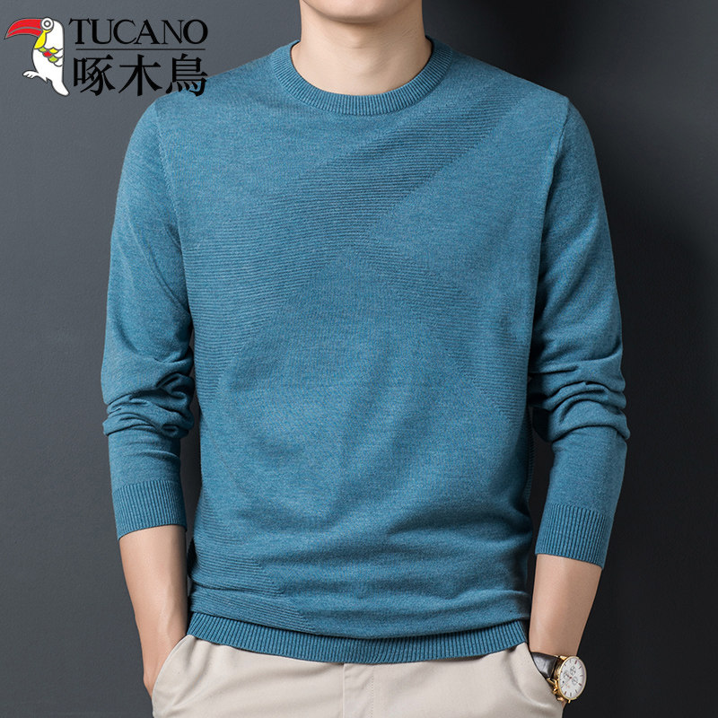 Woodpecker autumn and winter middle-aged men's knitted sweater round neck solid color wool sweater clothes casual inner clothes sanitary clothes