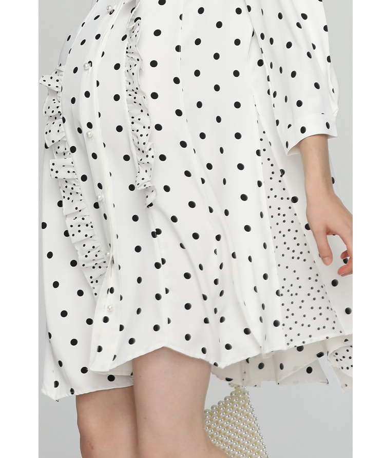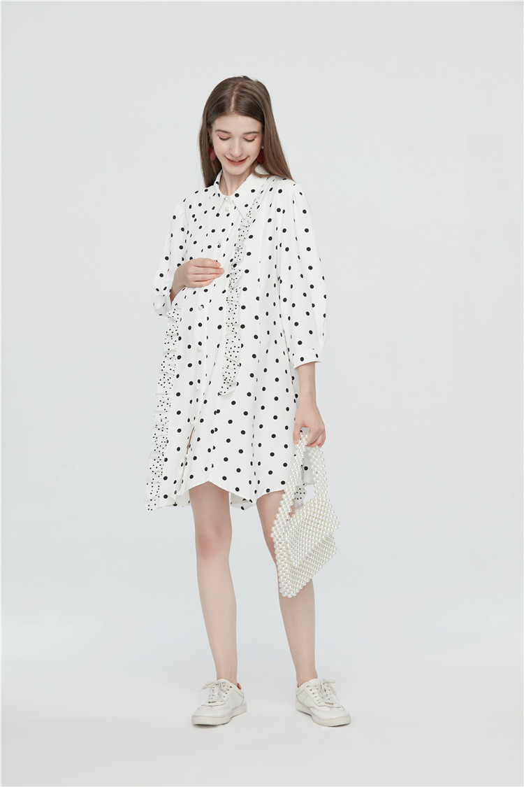 Pregnant women work clothes dress fashion 2021 autumn Pregnant women early autumn Polka dot shirt dress medium and long version