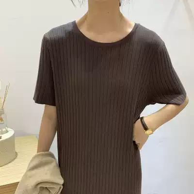 Early autumn new short-sleeved knitted round neck solid color 2021 temperament loose and thin Korean Dongdaemun pullover dress