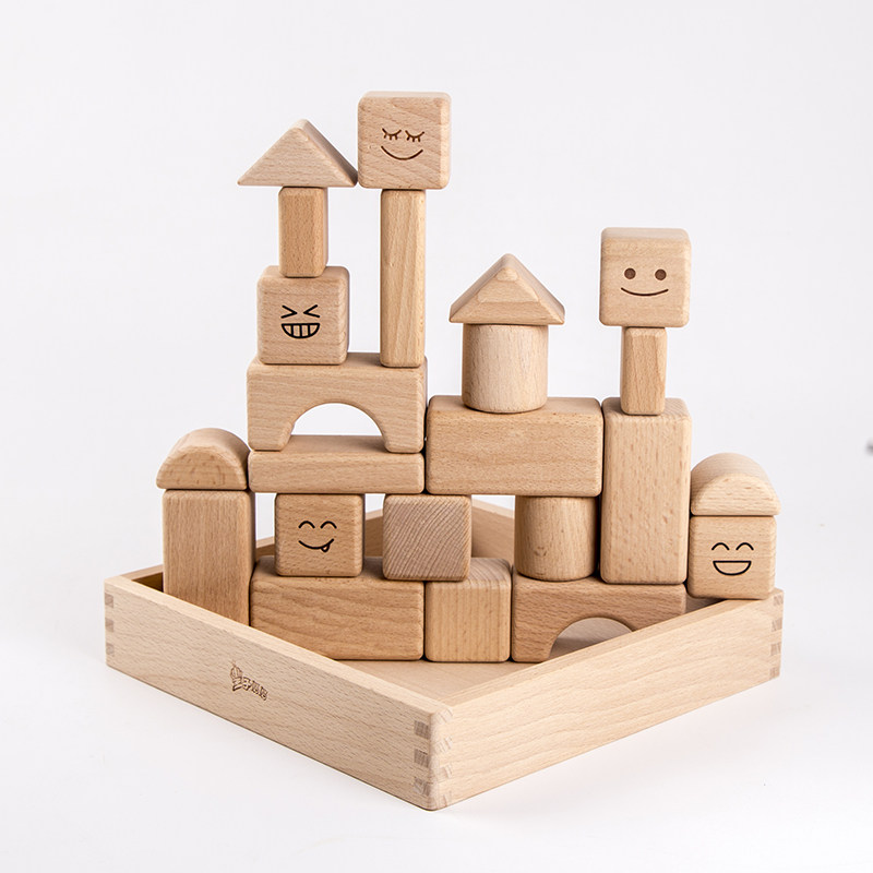 Beech solid wood paint-free environmental protection building blocks infants and young children can chew wooden toys 6-12 months 01-3 years old baby