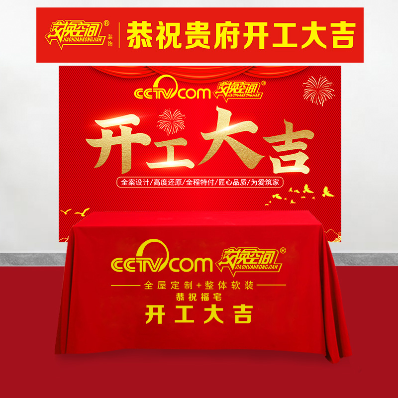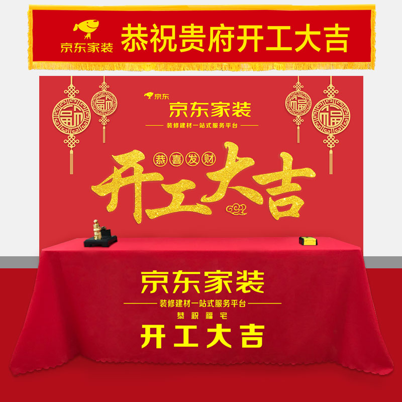 Opening ceremony supplies Decoration full set of construction site start Daji tablecloth custom folding table sledgehammer banner set