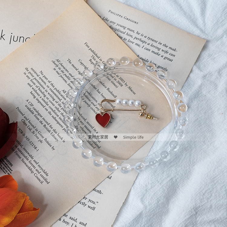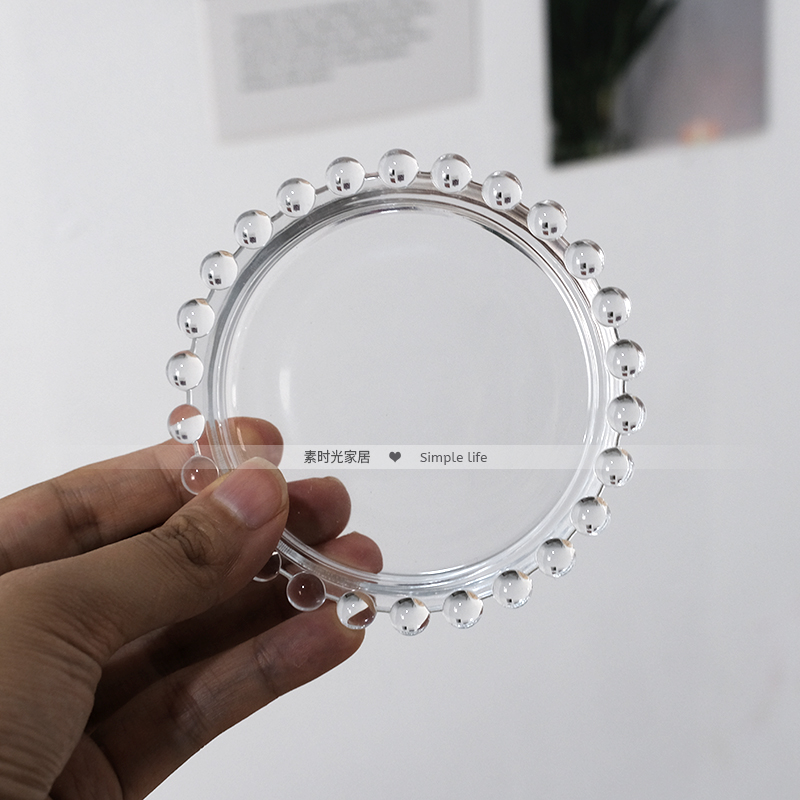Mini Pearl edge glass plate transparent small dish jewelry storage plate coaster jewelry holding tray props