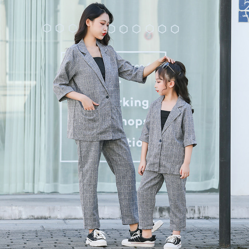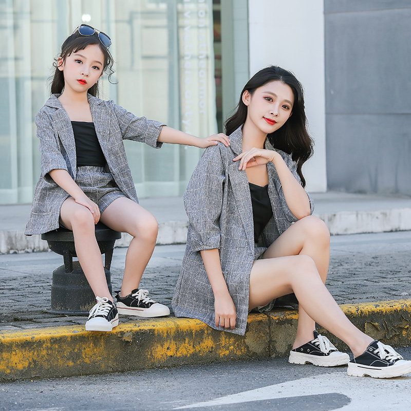 Girl's suit suit 2022 new pro-sub-dress girl Fashion harness Spring and autumn Korean version Mother woman suit Three sets