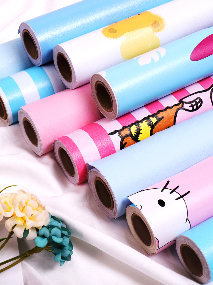 Children's room Wall Wall Decoration Bedroom Background Cozy Waterproof Damp wall Paper Dorm can scrub cartoon wallpaper Self-adhesive