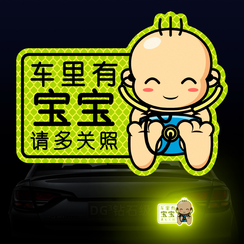 3M reflective car sticker-Rabbit rabbit (yellow) 3M reflective car sticker-pregnant woman in the car 3M reflective car sticker-pregnant woman driving 3M reflective car sticker-female baby 3M reflective car sticker-panda head (