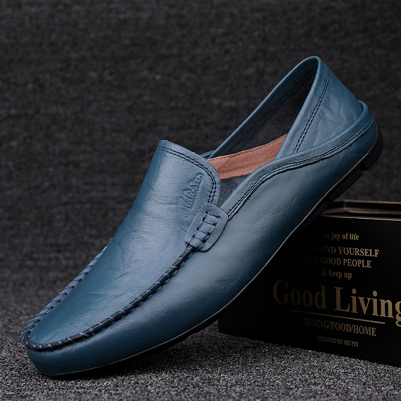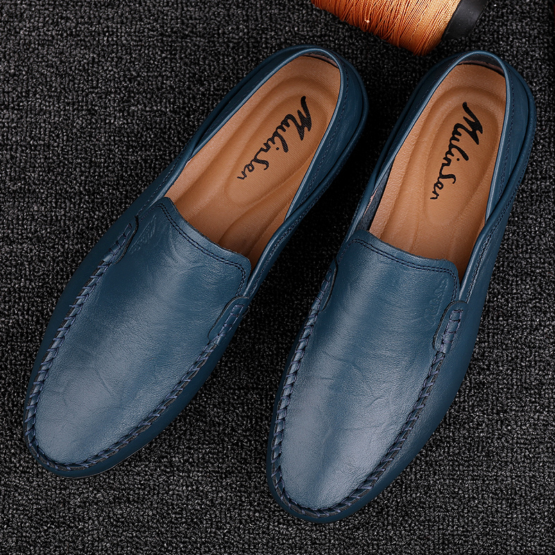 Mulinsen men's shoes autumn 2022 breathable beanie shoes men's leather breathable casual leather shoes all-match soft bottom lazy shoes