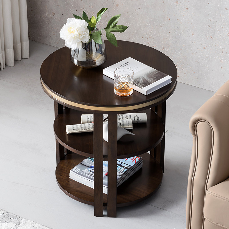New Chinese style solid wood small apartment simple creative living room balcony bedside table household corner sofa side several round several