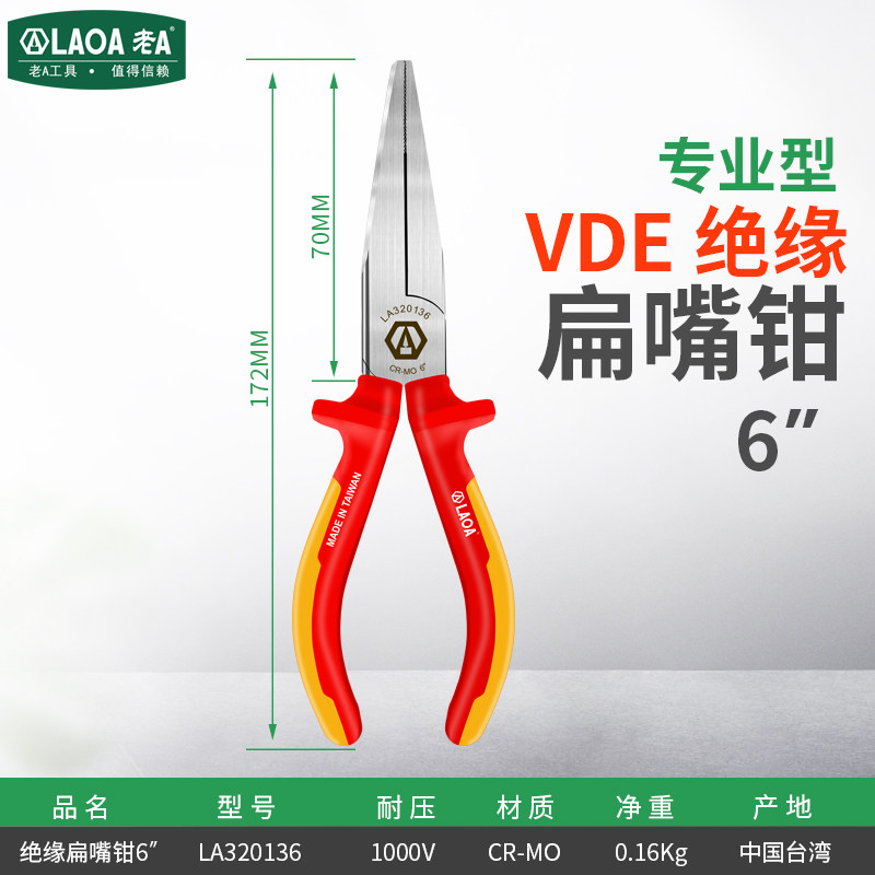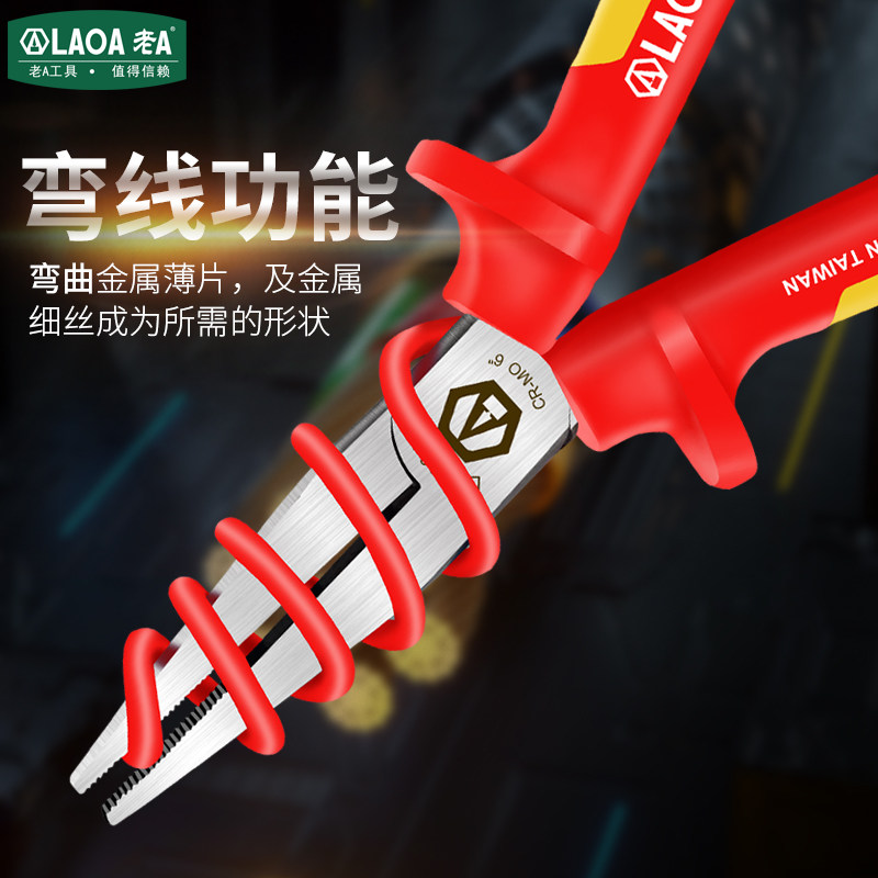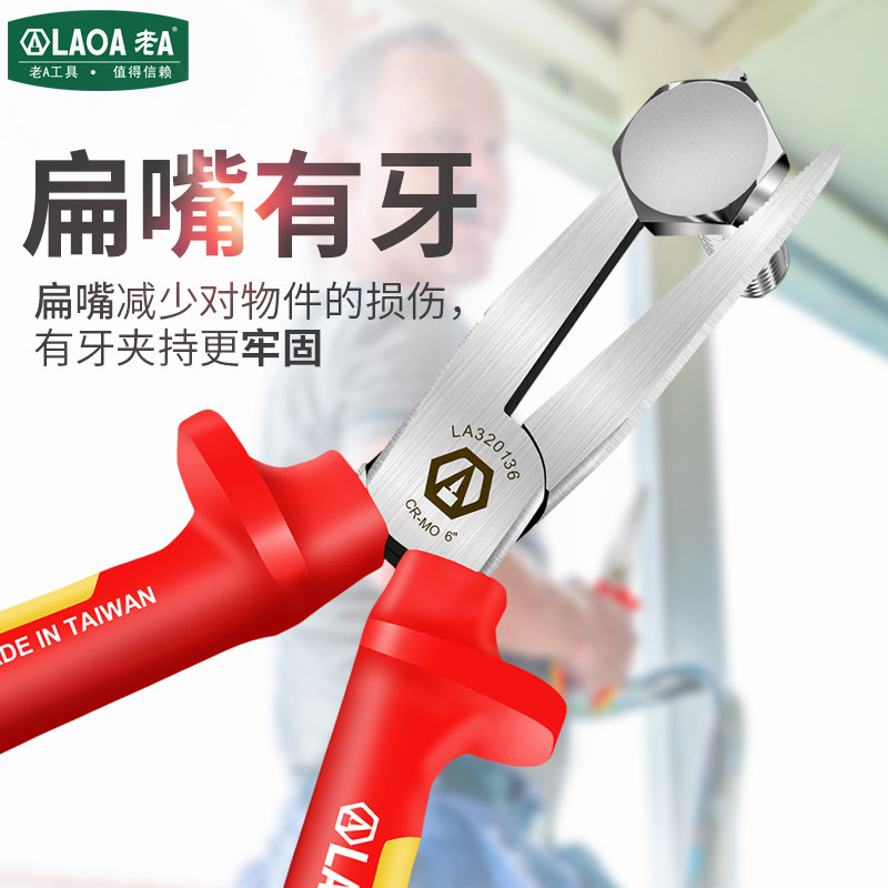 Old A multifunctional insulating flat mouth pliers bending flat mouth thin mouth electrician small pliers 1000V German certified flat mouth pliers-Taobao