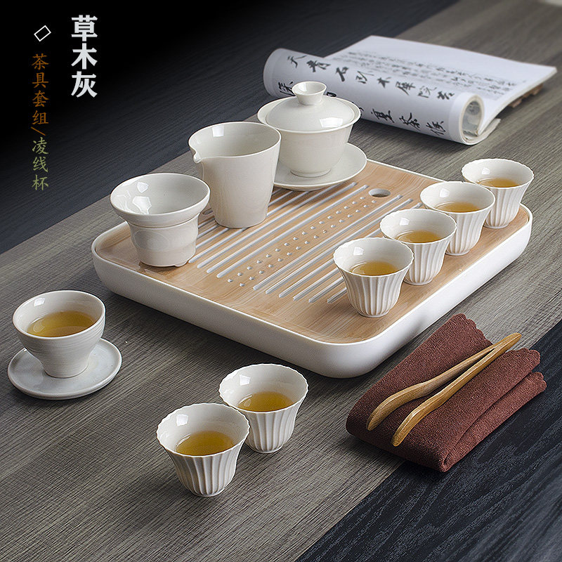 Defied Ceramic Grass Wood Ash Qigong Fu Tea Furniture Small Suit Chinese Tea Cup Home Living Room Minimalist Cover Bowl Gift Customization