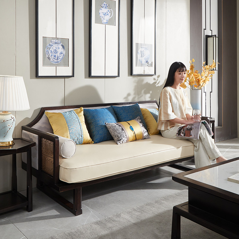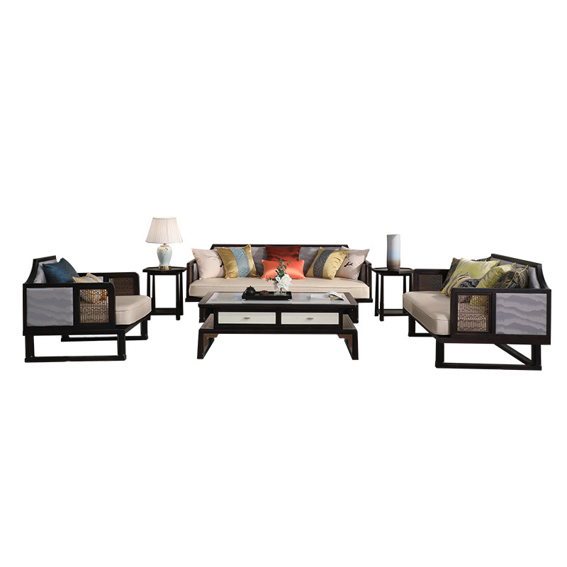 New Chinese-style solid wood sofa Zen living room modern minimalist light luxury large-scale fully furnished ash wood furniture combination