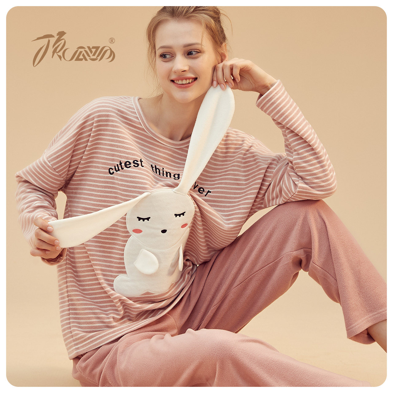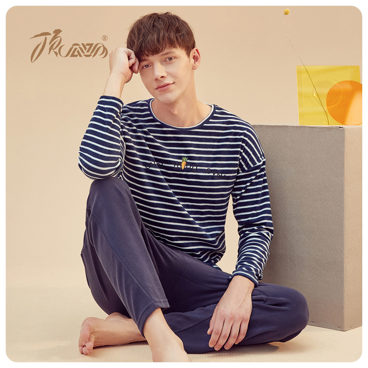 Top Guagua Autumn Winter Couple Sleeping Clothes Shake Grain ladies Striped Long Sleeves Suit Men's Home Conserved 2020 New Products