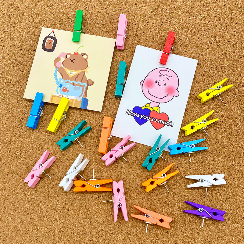 20 Creative Colorful Wooden small clips Nails Convenience Stickup Photo Wall Trim soft plank felt plate Sort by nail