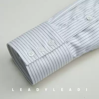 Leqi men's casual shirt business tooling Korean version of the trend handsome slim cotton white striped long sleeve shirt