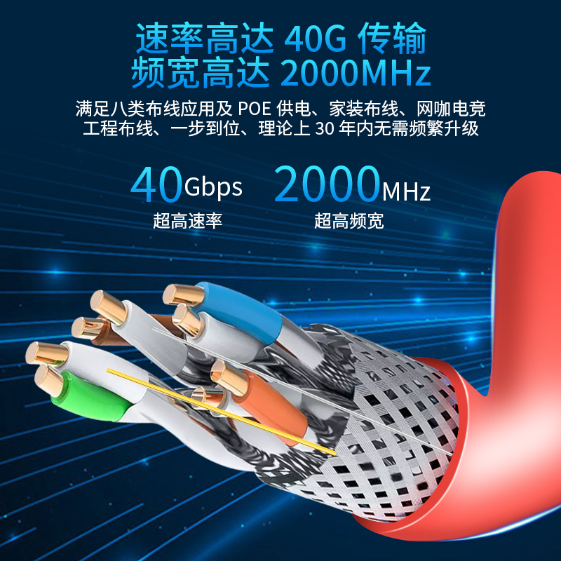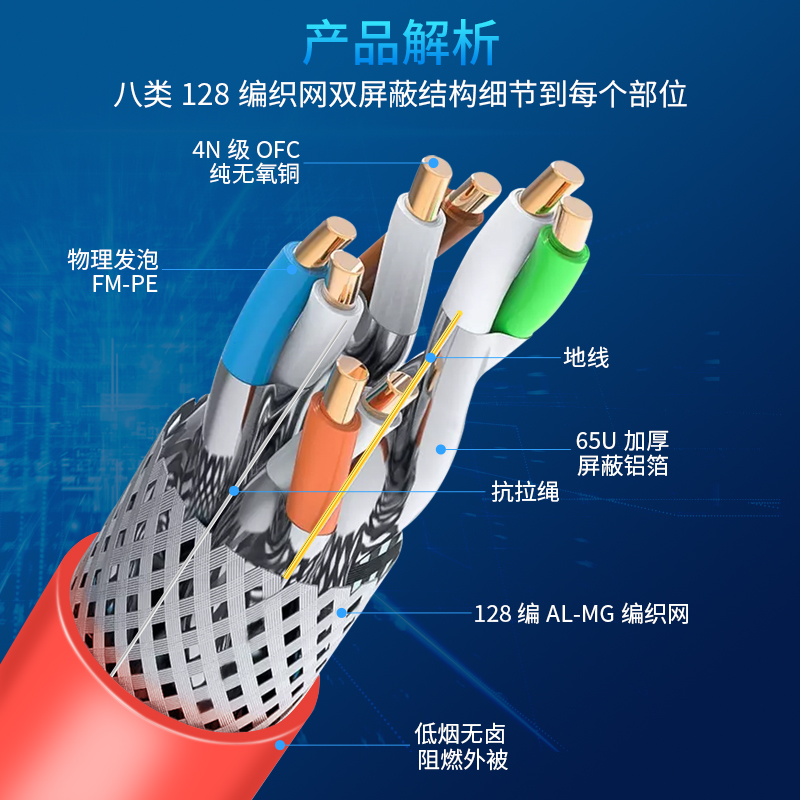 Amp eight class low smoke halogen-free double shielding pure oxygen-free copper core cat8 machine room engineering high-speed 10 Gigabit network cable home