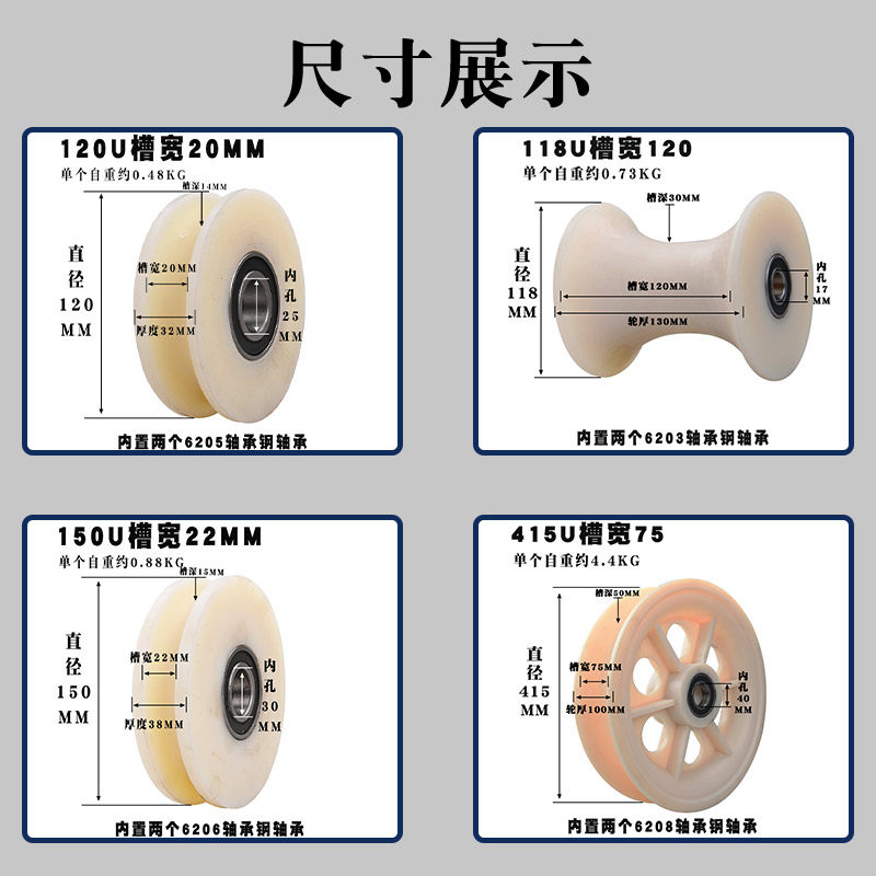 Nylon U - type Rope Rope Rail Cable Cable Line Rail Wheel Three - joint well line pulley