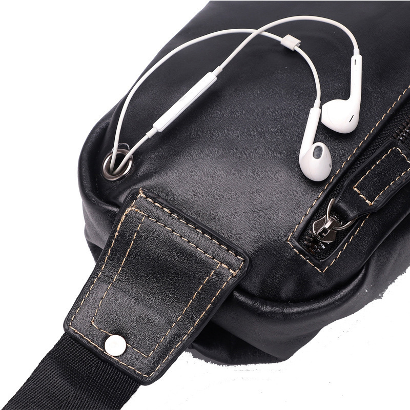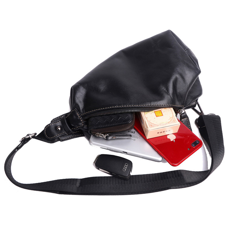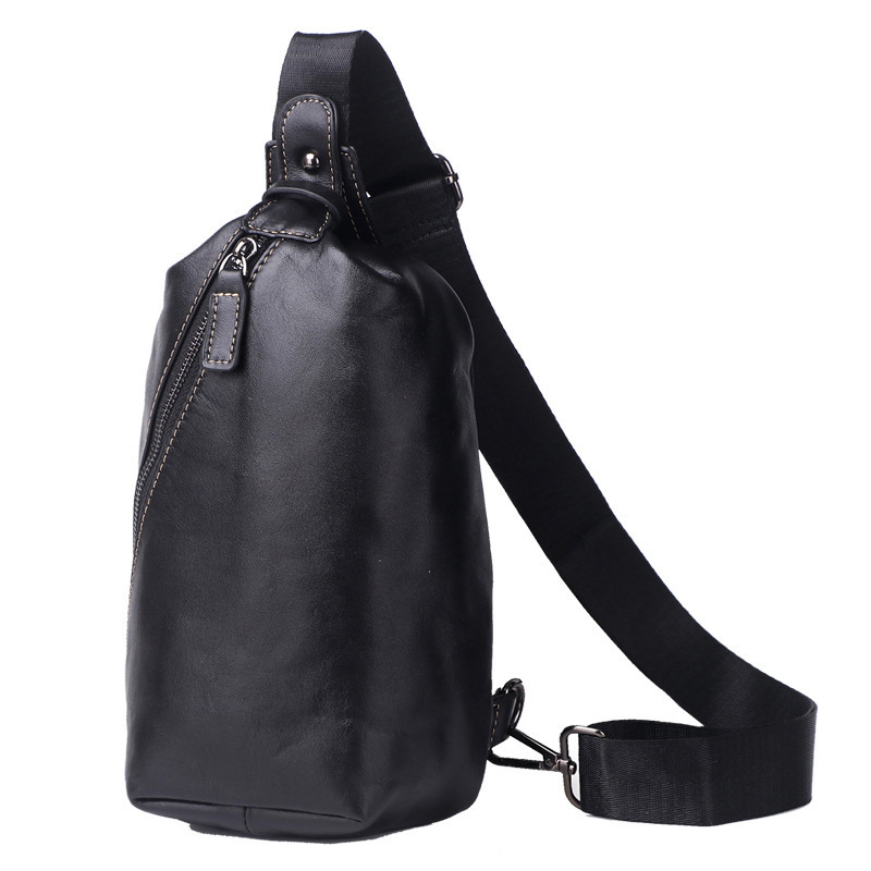 Genuine Leather Men's Shoulder Bag Chest Bag Fashion Top Layer Cowhide Chest Bag Casual Cylindrical Hanging Bag Waist Bag Outdoor Sports