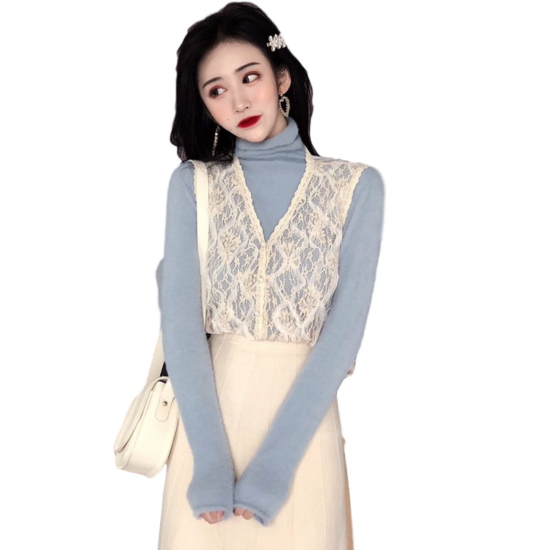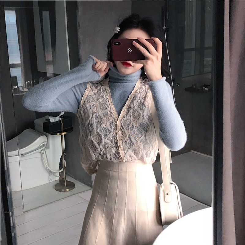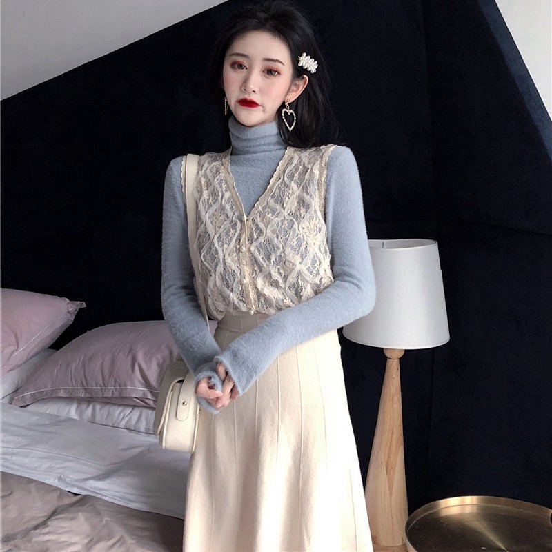 High-end Big Cards Withdrawal European Station European Goods Korea East Gate Brand Vest High Collar Knit Half Body Dress Three Sets