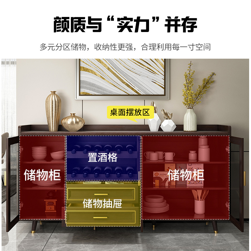 Solid wood sideboard modern minimalist wine cabinet integrated against the wall tea cabinet light luxury shelf home living room dining cabinet