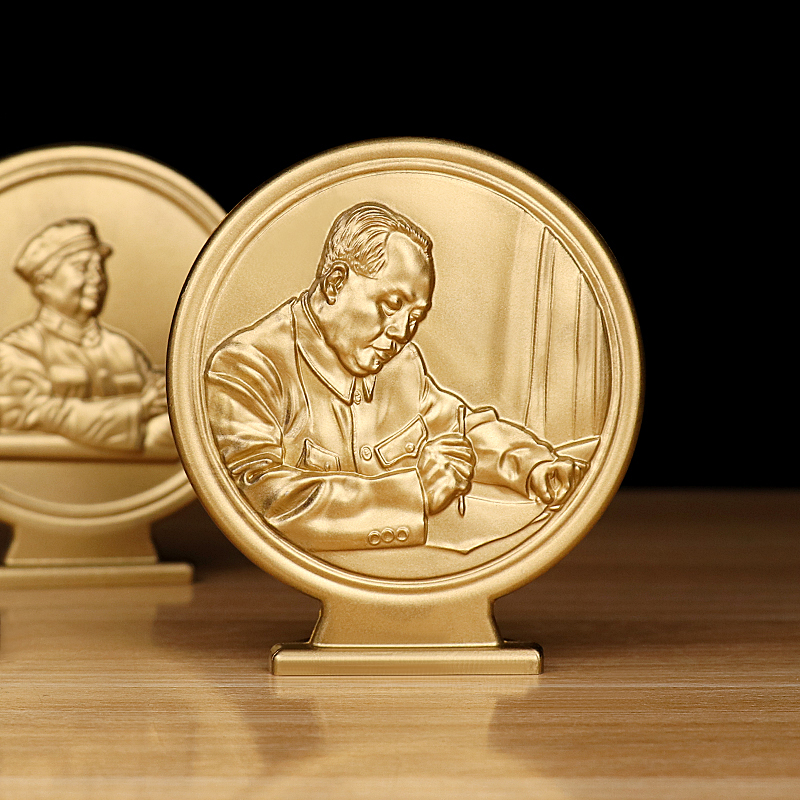 Pure brass Chairman Mao sitting badge Comrade Mao Zedong commemorative medal home office desk decorations ornaments