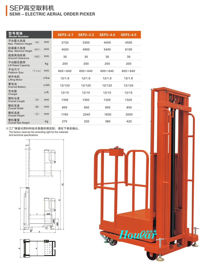New szhoularFSEP all-electric high-altitude reclaimer automatic pick-up truck self-propelled lift