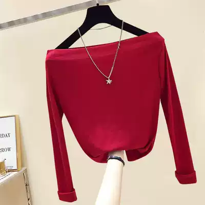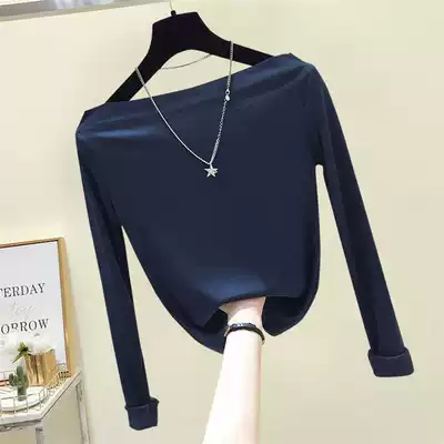 South Korea 2021 early autumn new one shoulder long sleeve T-shirt women Net red knitted base shirt ins strapless top