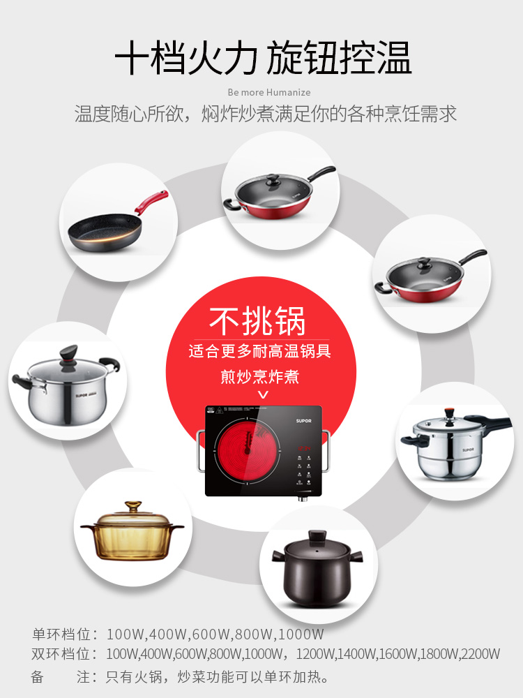 Supor Electric Ceramic Furnace Household Induction Furnace Stir-fry Shuanghuan Hot Pot Desktop Multi-function All-in-one Pot Wok Pot New
