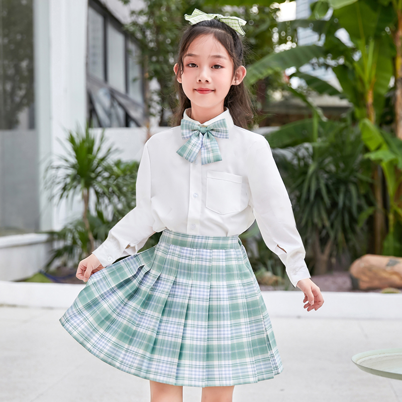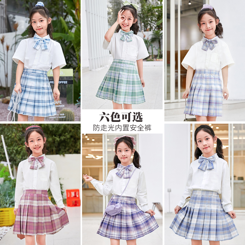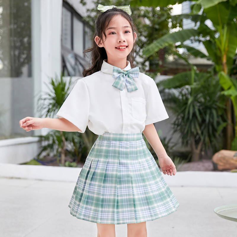 Mint green grid skirt short sleeve shirt (send bow tie tights) Sky blue grid skirt short sleeve shirt (send bow tie tights) Dream purple grid skirt short sleeve shirt (send bow tie tights) Cherry pink