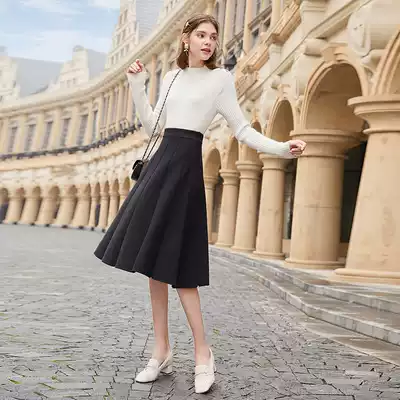 Fragrant Knitted Skirt Women's 2021 Autumn Winter New Temperament High Waist A- line dress Long Edition Slim Black Skirt
