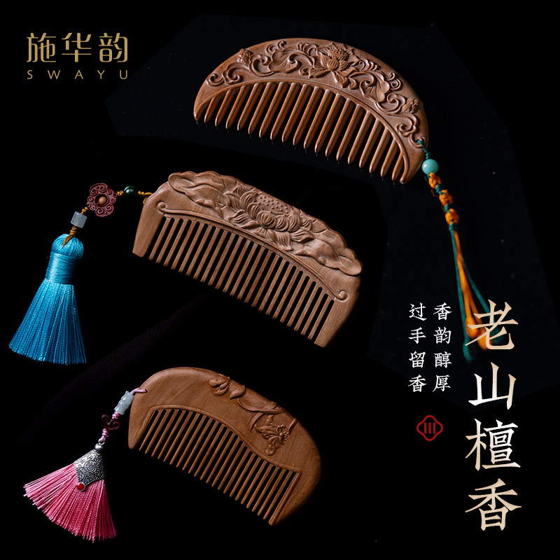 Shi Huayun India Laoshan Sandalwood comb carving comb Anti-static hair loss send girlfriend mother creative gifts