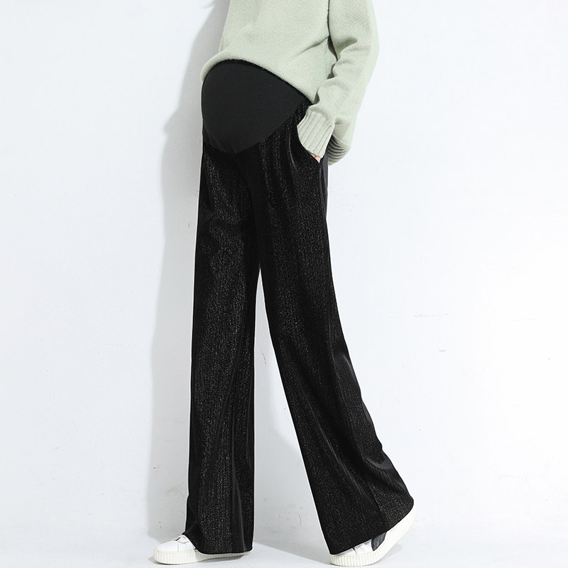 Pregnant women pants Spring and Autumn Fat MM loose mom towed gold velvet pregnant wife broad legs pants wear pants outside wearing trousers