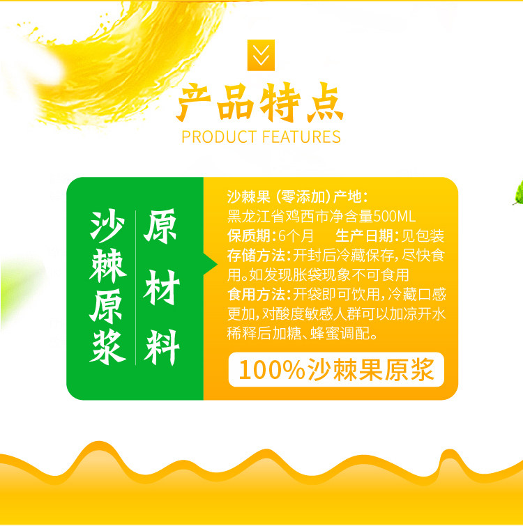 Hot selling snow lanterns sea buckthorn original pulp 500 ml 1 bag Blizzard manufacturer Promoted into the store There are more benefits and more orders