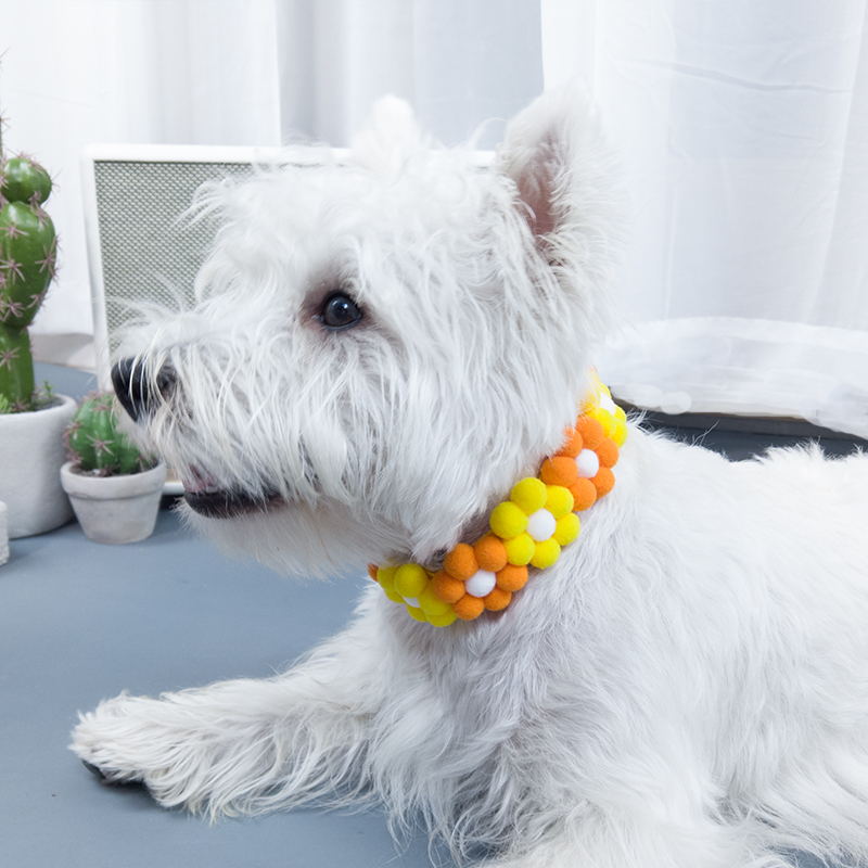 Kitty Neck Ornament Dog Necklace Pet Cat Item Lap Cute Small Dog Collar Handwoven Wool Ball Trim-Taobao