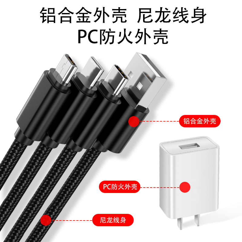 One Drag Triple Charge Line Three-in-one Phone Data Line Universal Triple Head Multi Purpose Versatile versatile Applicable Android Apple Quick Charge Quick Vivo multifunction USB Xiaomi Huawei