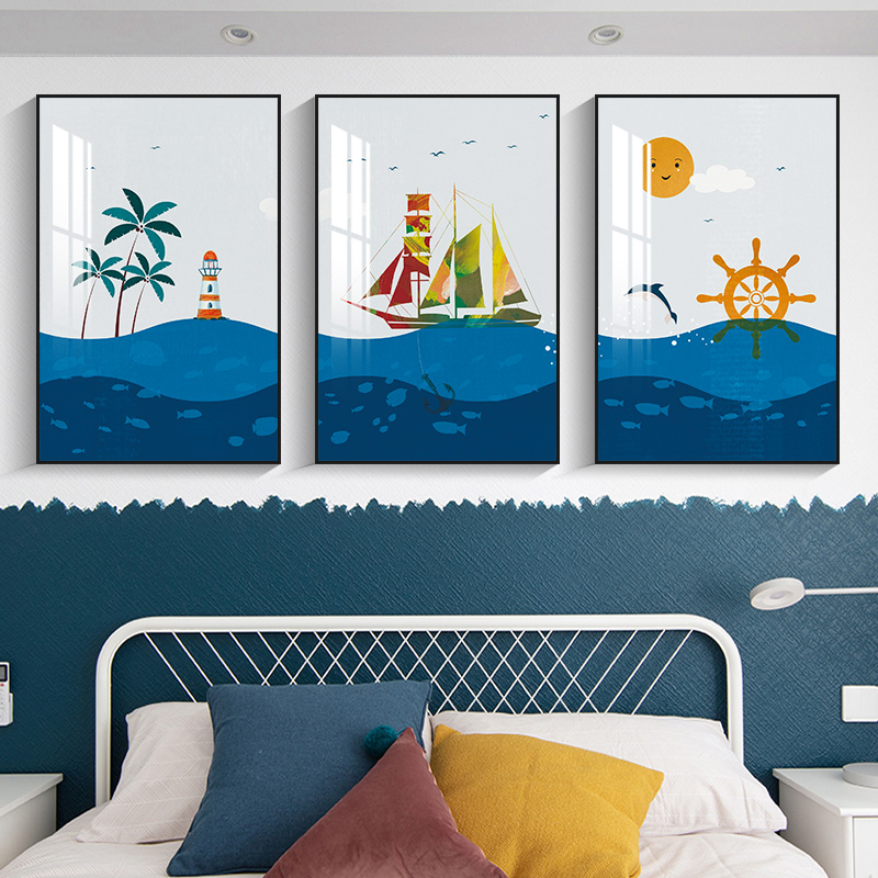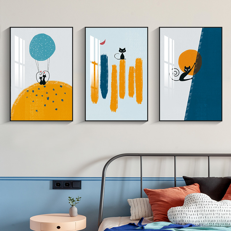 Living room decoration painting small fresh children's room cartoon hanging sofa background wall triple painting modern luxury bedhead painting