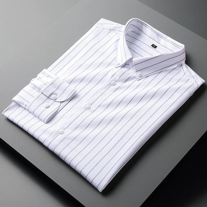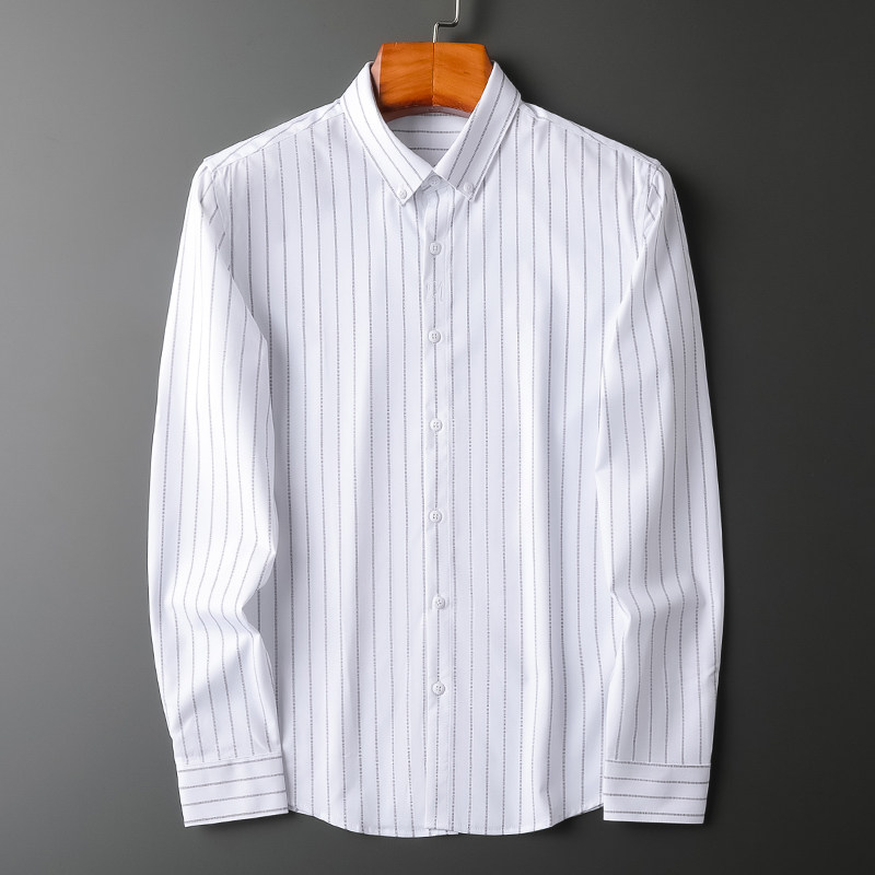 Autumn striped shirt Men's long-sleeved free ironing embroidery casual business inch shirt Korean version thin slim men's shirt