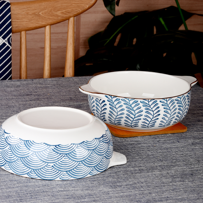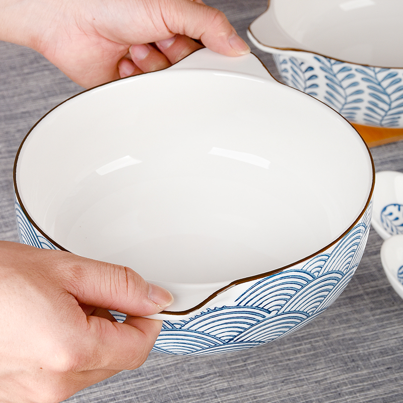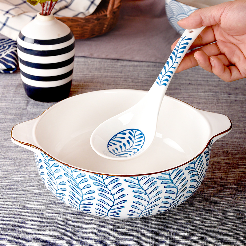 Day style 8-inch double-ear ceramic soup bowl home 2021 new strap ear bowl public large anti-burn soup with soup bowl
