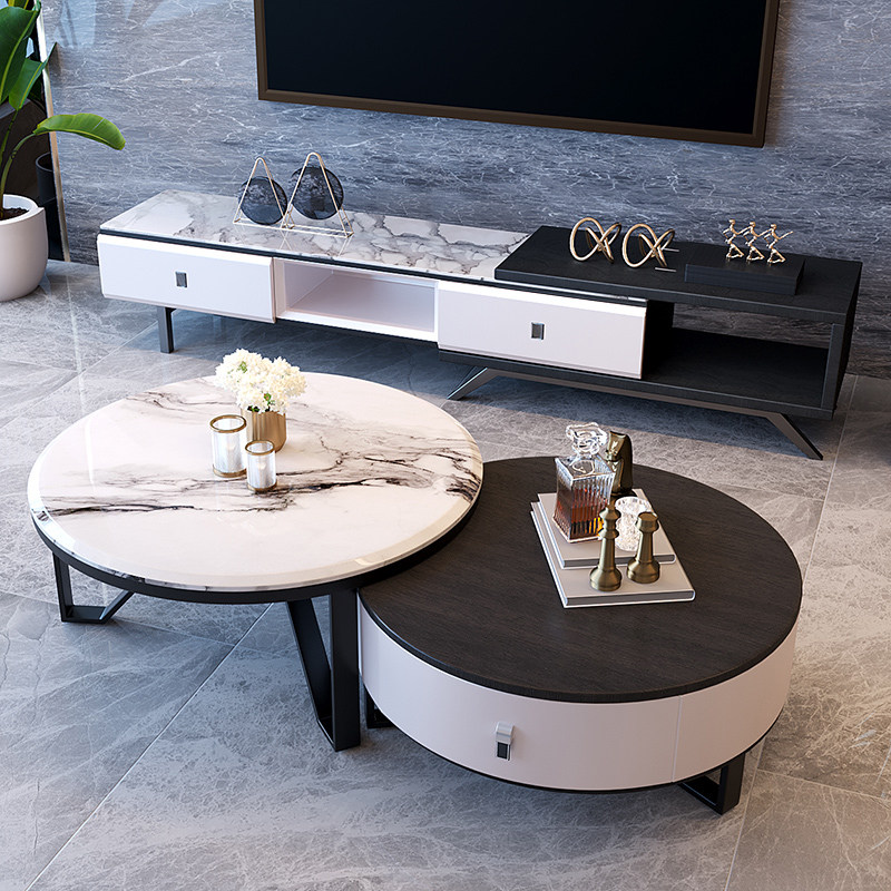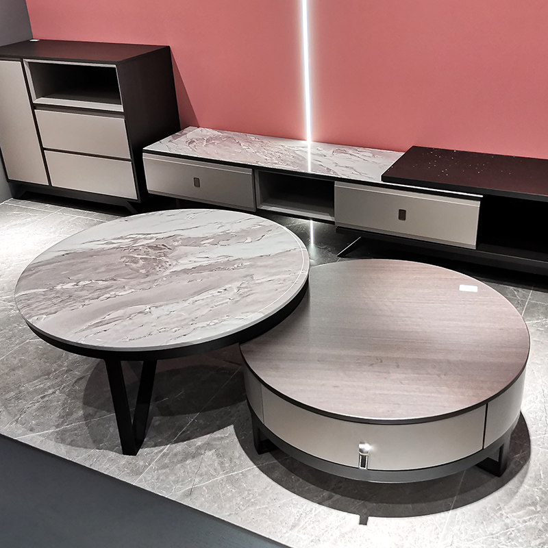 Round table with drawers Telescopic TV cabinet Size combination round table Storage high cabinet