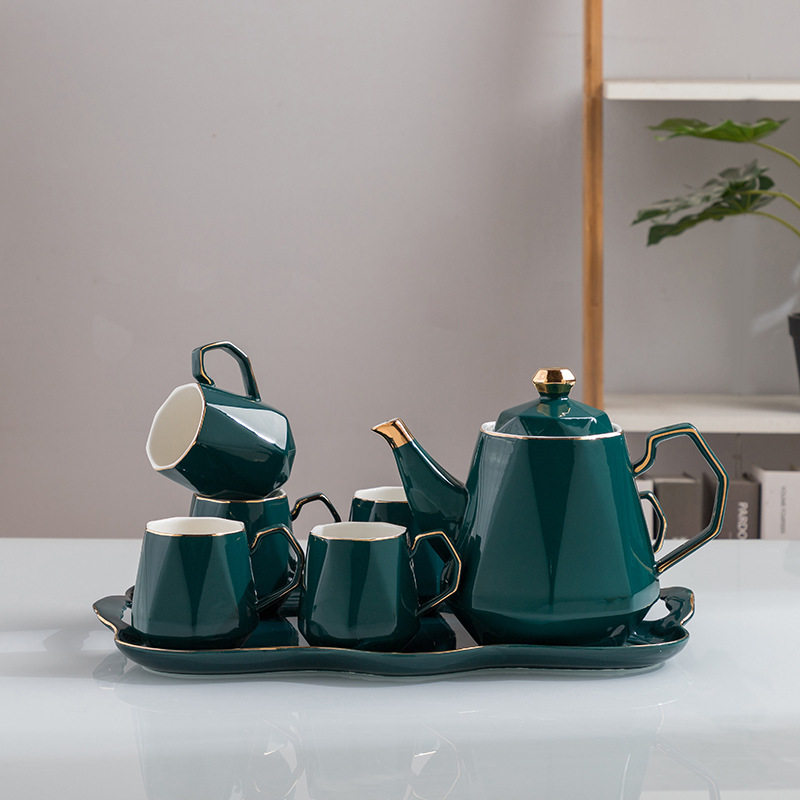 Cup set tea cup household luxury water cup ins Nordic style living room flower teapot ceramic water set cup