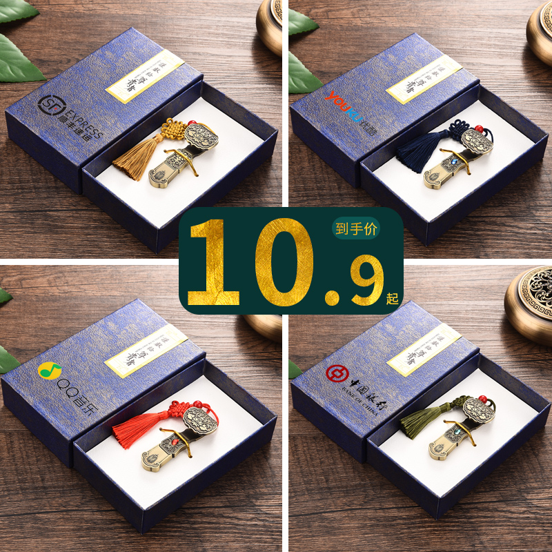 Ruyi ancient style flash disk 32gb custom logo car music mobile phone computer USB flash disk special 16g high-speed genuine lettering metal personality cute girl creative 64 flash disk jewelry hanging